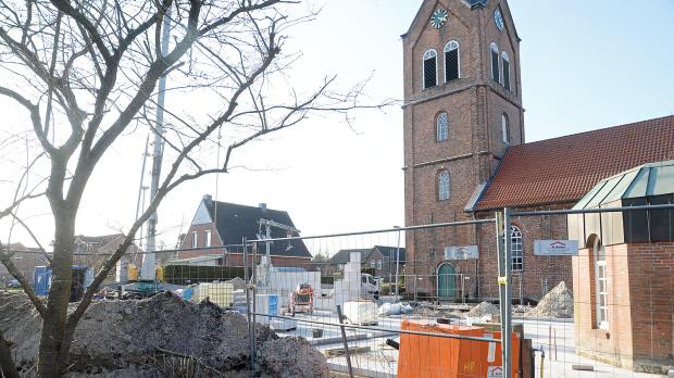 Große Baustelle bei der Kirche in Neermoor