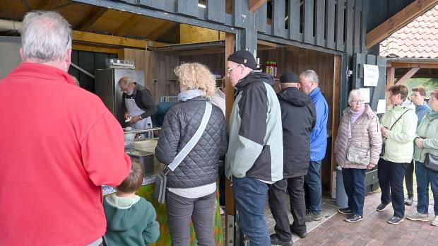 Mit 30 Eimern Fisch, 160 Kilogramm Kartoffeln und 270 Eiern war der Möhlenkring Rhaude-Holte bestens vorbereitet – und wurde von hungrigen Gästen regelrecht überrannt.