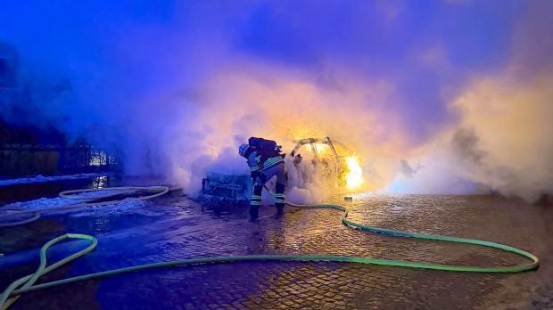 Feuerwehr und Polizei rückten am späten Mittwochabend nach Weener aus. Ein Auto brannte aus, zwei weitere wurden beschädigt.