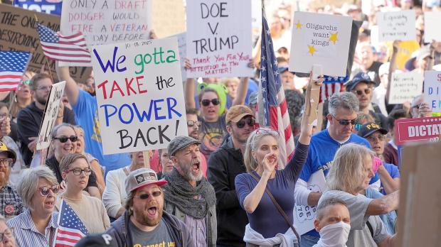 Reißt der US-Präsident zu viel Macht an sich? Das befürchten viele Landsleute. Millionen Demonstranten gehen auf die Straße. Trump tut das als „Witz“ ab - und spricht von „sehr kleinen“ Protesten.
