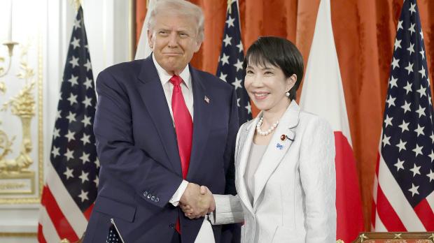 US-Präsident Trump und Japans neue Regierungschefin Takaichi betonen die Bedeutung ihrer Sicherheitsallianz. Foto: Mark Schiefelbein/AP/dpa