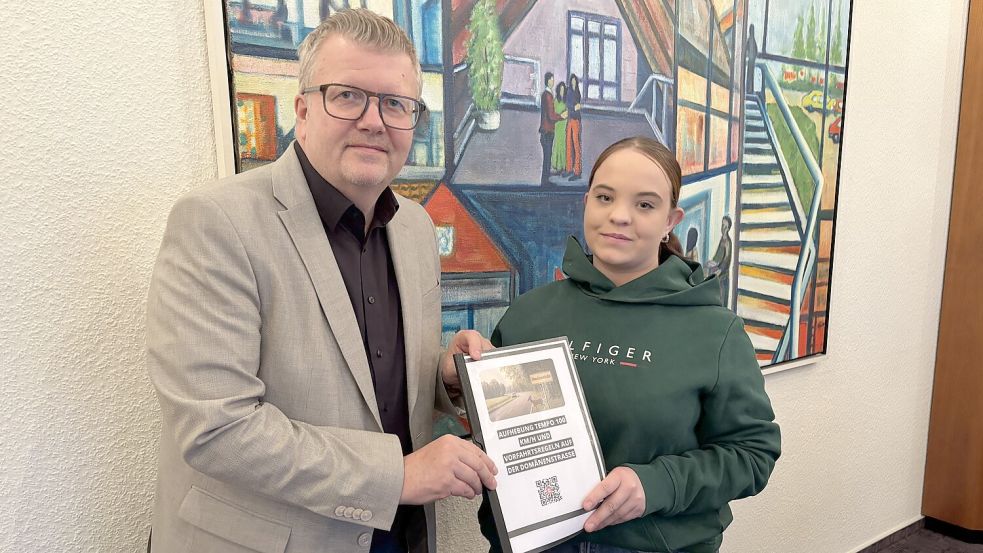 Petra Brand und ihre Tochter Jona Brand aus Völlenerkönigsfehn hatten im Oktober eine Petition gestartet. Sie fordern ein Tempolimit an der Domänenstraße. Das sagt die Gemeinde dazu. Mit Kommentar.