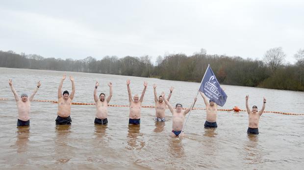Eisbaden Dutzende steigen zum Weihnachtsschwimmen in den Orankesee