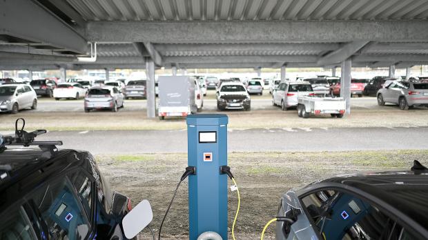 Eine Ladesäule am Flughafen Leipzig/Halle. Für Großstädter ohne eigenen Stellplatz ist das Laden eines E-Autos umständlicher und teurer als für Eigenheimbesitzer. (Symbolbild) Foto: Jan Woitas